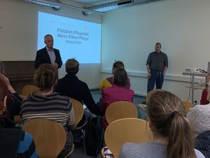 Im Rahmen der Veranstaltung „Plötzlich Pflegefall!“ in der Wolfdietrich-Schnurre-Bibliothek im Komponistenviertel diskutierten wir, welche ersten Schritte notwendig sind, an welche Stellen man sich wenden kann und welche vielfältigen Möglichkeiten der Unterstützung es für die häusliche Pflege aber auch in den letzten Lebensmonaten gibt.